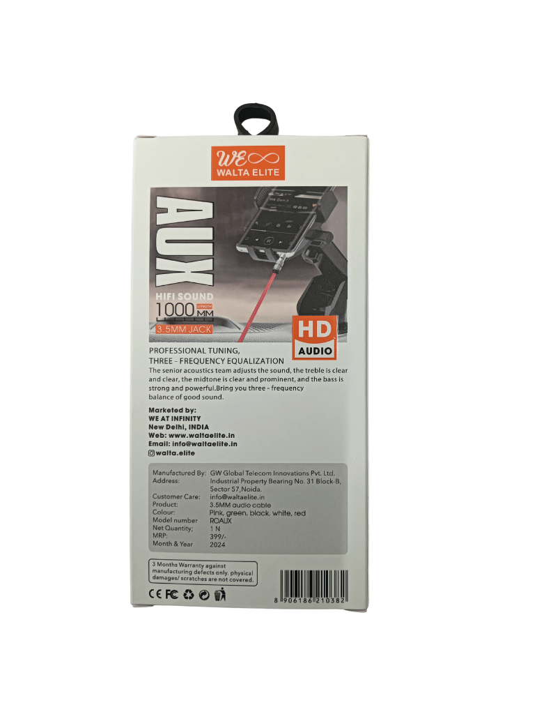 - You will get 1 Aux Cable 3.5 mm, 1000 MM.