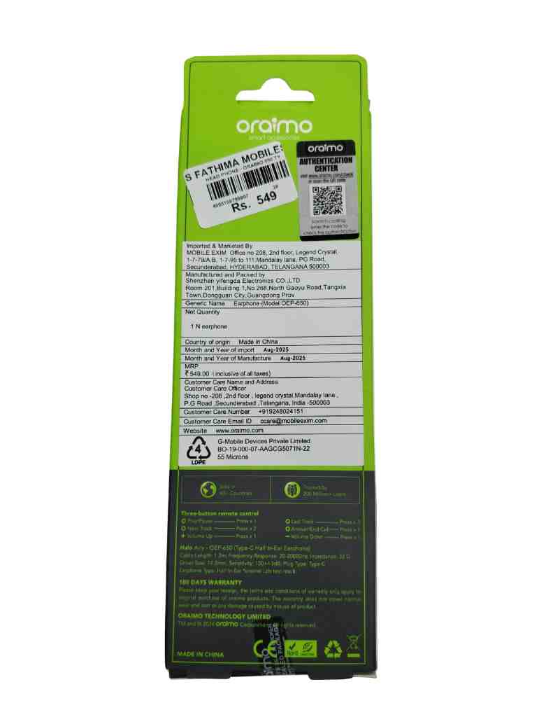 Head Phone - Oraimo 650 Type-c @ 38/4895180799907