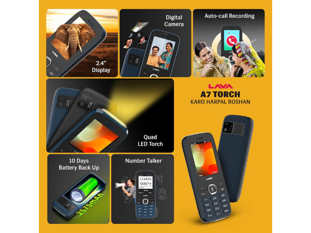 Lava A7 Torch Dual Sim Keypad Mobile Phone (with Instant Slide Torch)| 2.4" Big Display | Powerful Battery Backup | Vibration Alert | Camera | Wireless FM & Bluetooth | Blue