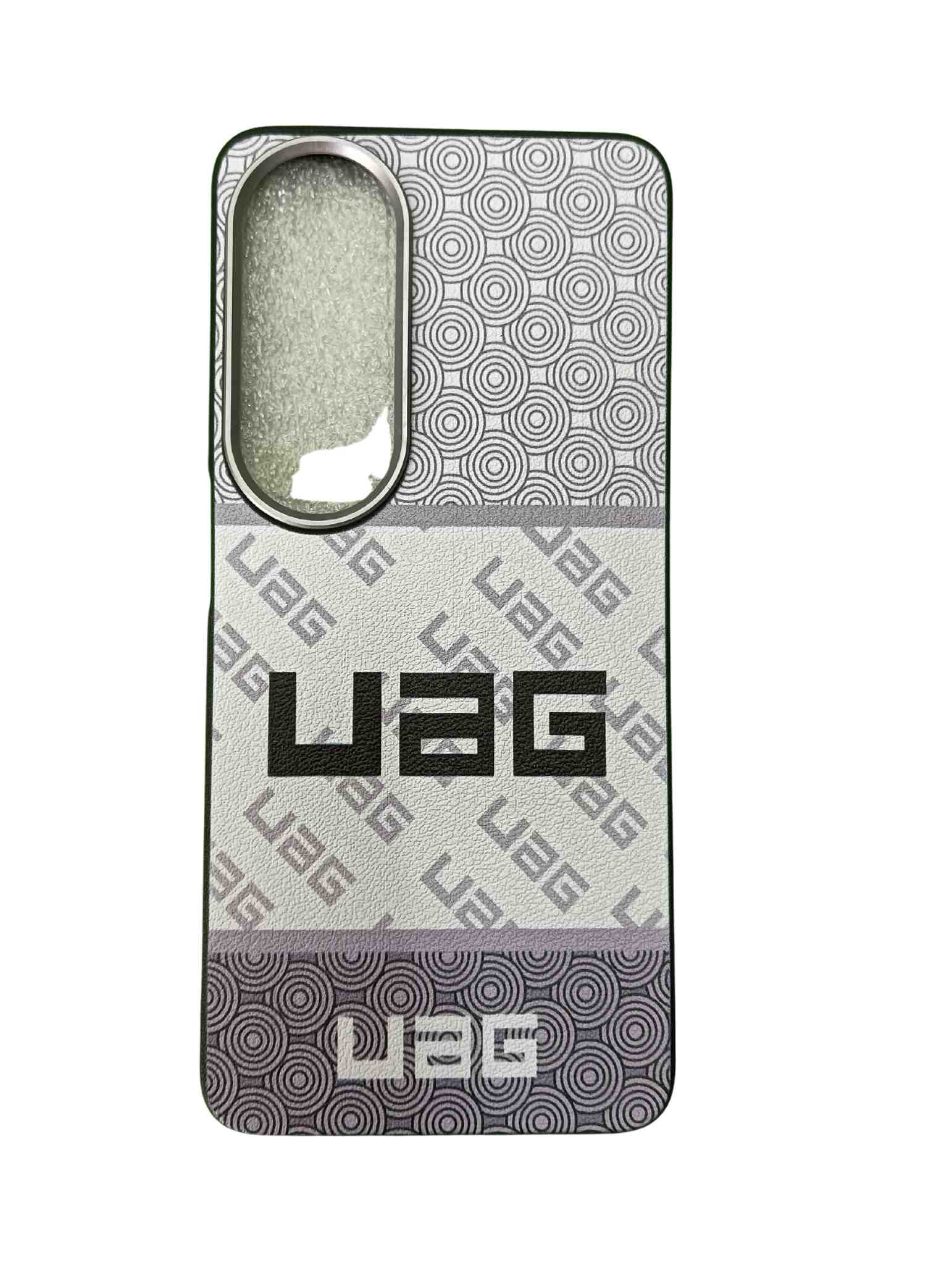 The description mentions a "Fashion Case" and highlights the brand's reputation for protective cases, suggesting this model balances style and durability. It also notes the common UAG design elements of a hard outer shell and shock-absorbing inner layer, as well as raised edges to protect the screen and camera.